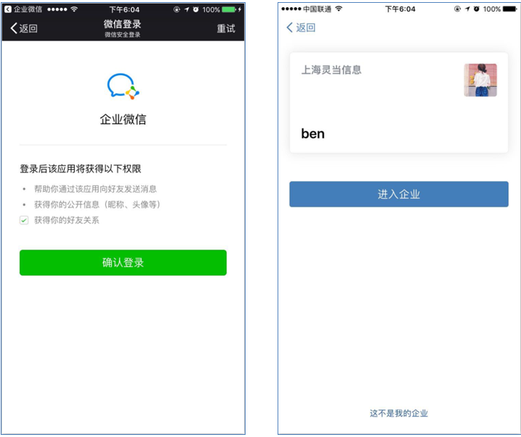 ✧ 成员点击加入企业,打开企业微信使用助华CRM应用
