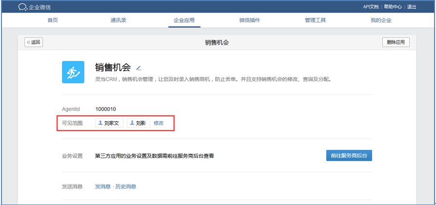 ✧ 登录后自动进入应用授权界面,选择应用可见范围,即哪些成员可以在企业微信端使用助华CRM