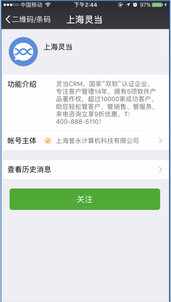 应用的使用基于企业微信,注册企业微信后,你可以很方便地使用 灵当CRM 请扫描二维码注册企业微信: