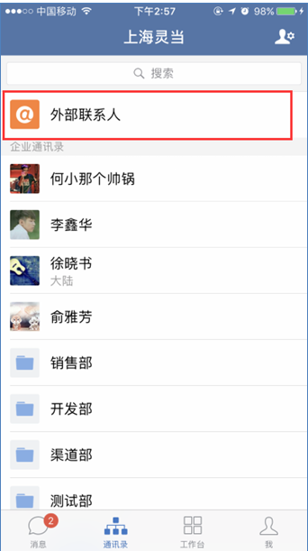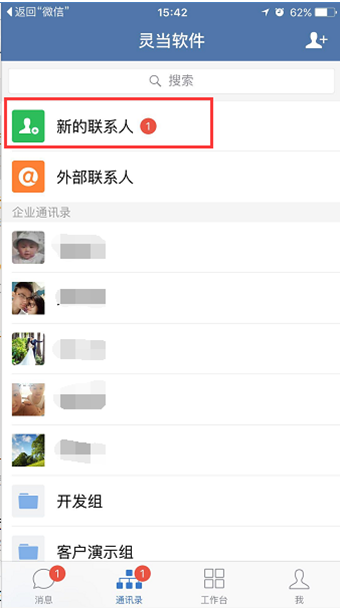 6) 联系外部联系人(可以通过发消息和语音通话进行联系)
