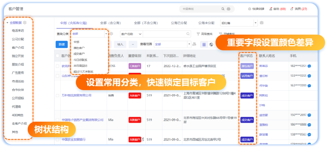 ·对客户进行分级分类管理,帮助企业更快识别20%高价值客户,合理分配销售资源,重点投入为企业带来80%销售业绩的客户