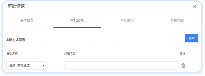在审批必填的页签下,可以让审批人针对不同的审批结果填写某些字段,以减少审批误判,提供审批结果反馈机制。