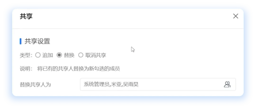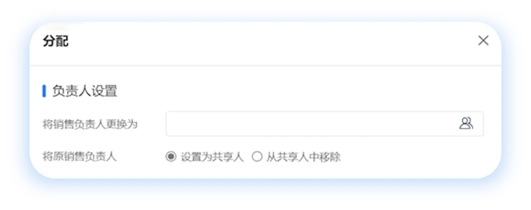 新功能里,除了可以更换负责人,还可以将原销售负责人设置直接设置为共享人,或是从共享人中移除: