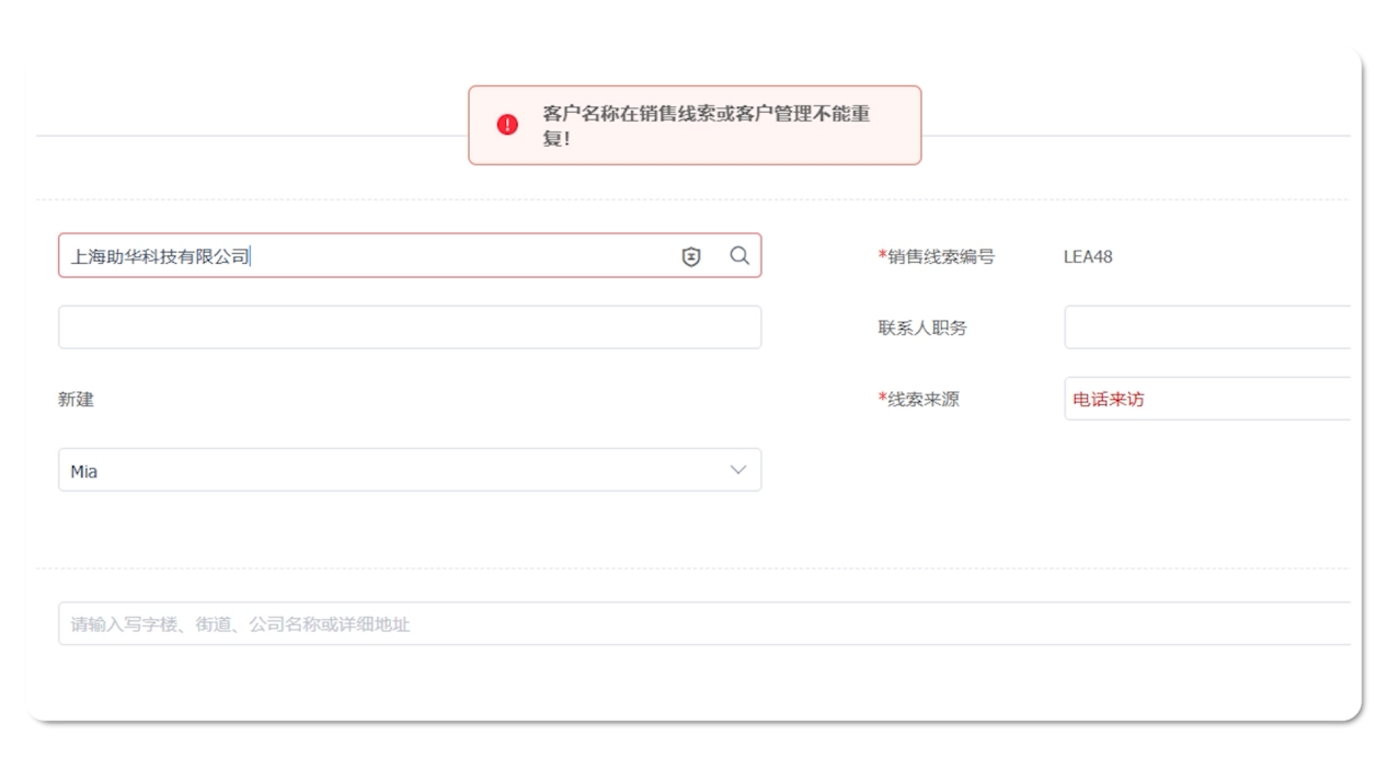发布时间:2025-01-02 18:49:46作者:销售小灵在一场活动中获取了大量的线索,并把这些线索都录入到了CRM的销售线索模块,当一周后他满怀期待地将这些线索推进至客户模块进行深入跟进时,却发现系统中已经有这位客户的数据了,无法继续推进。原来,在这之前,分公司的另一位销售小华将自己的一批客户导入到公司CRM的客户管理模块,由于线索和客户模块缺乏联动的检查机制,即使数据重复了,系统也无法识别提醒,在无形之间造成了企业销售资源的浪费。