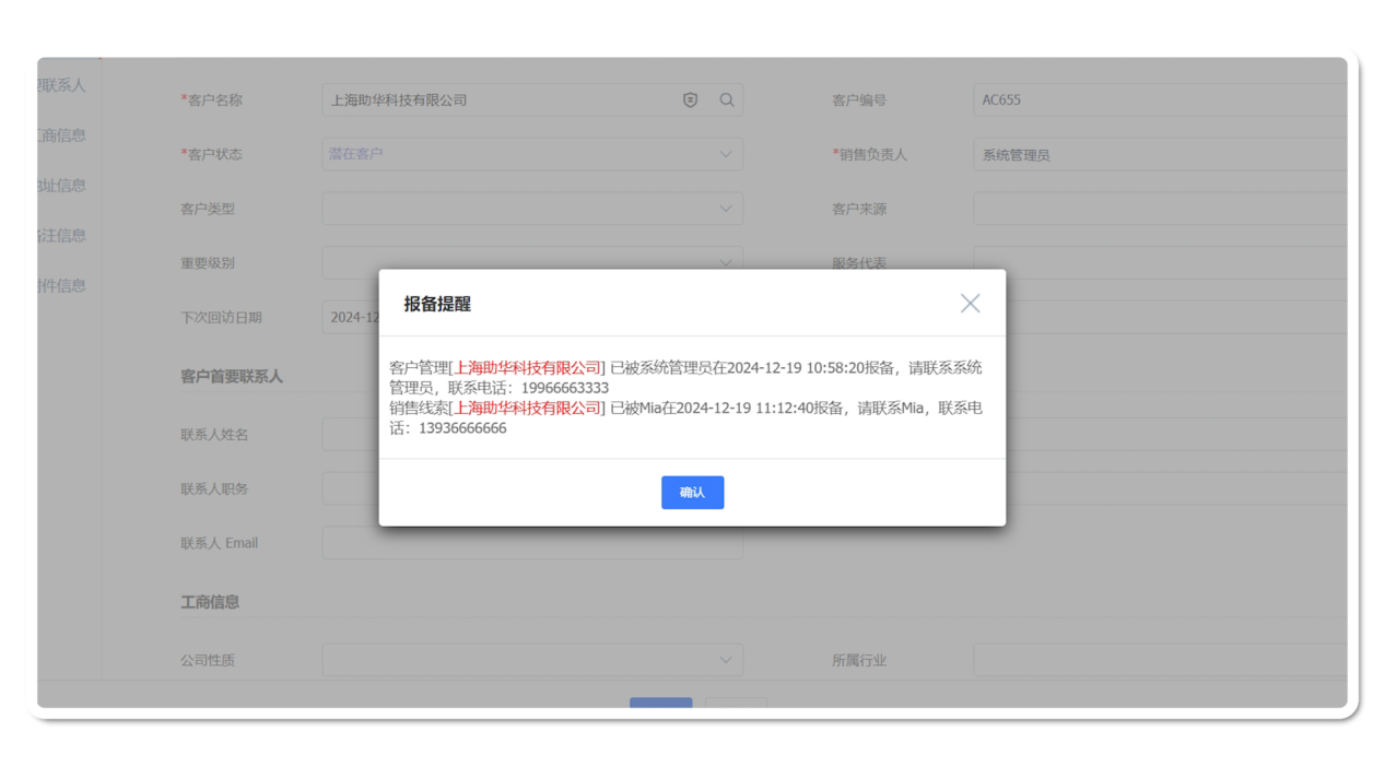 助华CRM联合查重功能 上海灵当信息科技有限公司