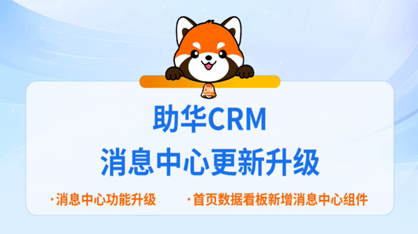 助华CRM首页数据看板新增消息中心新增了哪些组件